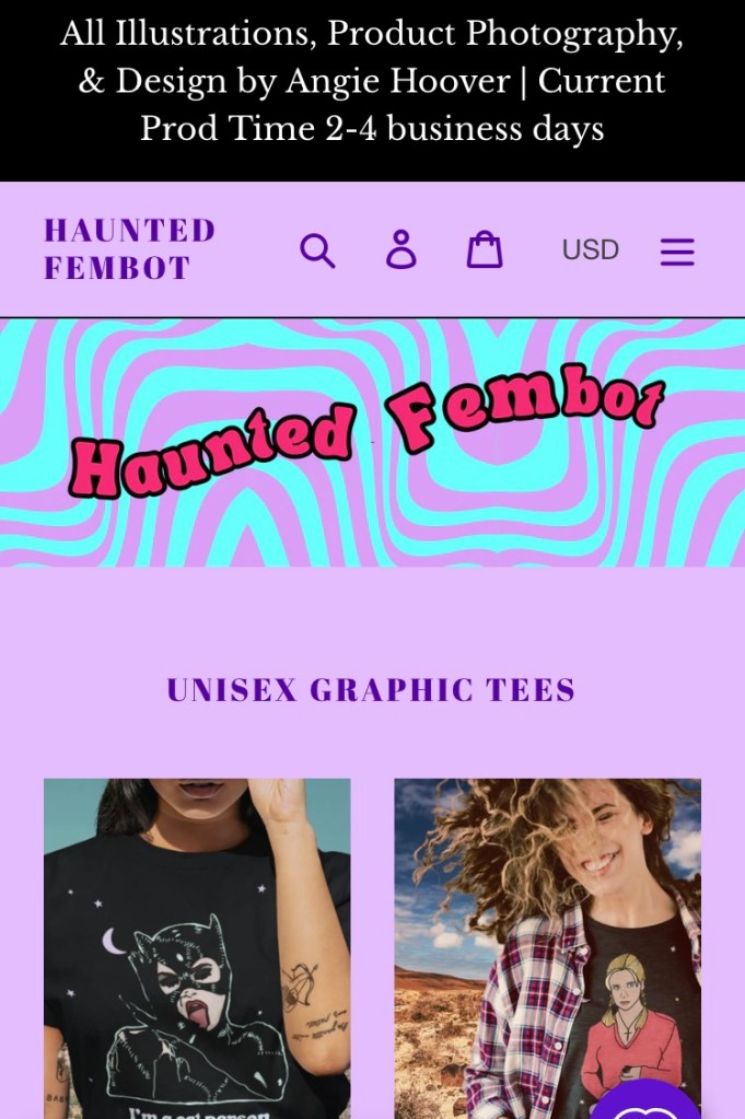 My femme punk lifestyle brand, Haunted Fembot, dawns multiple income streams including DTC & Wholesale merchandise, gated content, handmade items, meet & greets, and ad revenue. In order to convert my followers into customers, it is important that I use language, humor, and visual assets that appeal to their sensibilities.